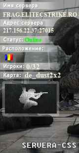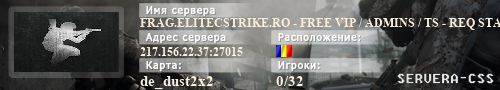 | Баннеры для сервера: FRAG.ELITECSTRIKE.RO - FREE VIP / ADMINS / TS - REQ STAFF | ||