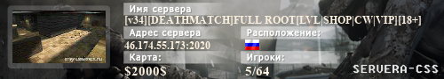 | Баннеры для сервера: [v34][DEATHMATCH]FULL ROOT[LVL|SНОР|CW|VIP][18+] | ||